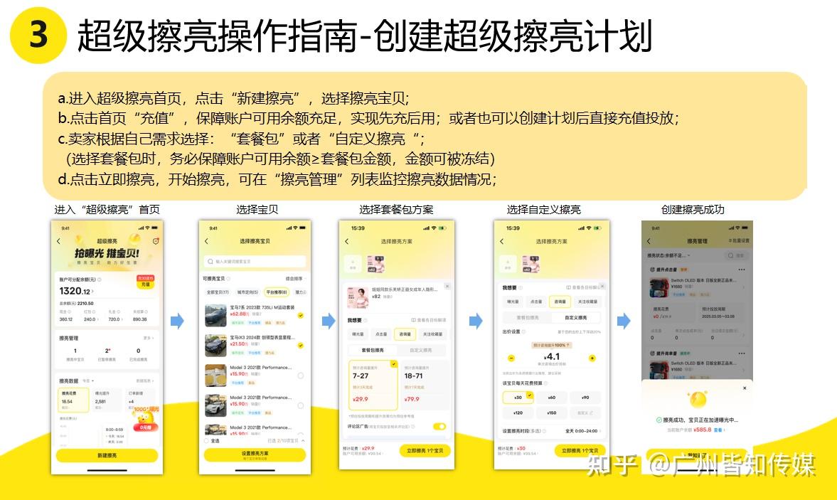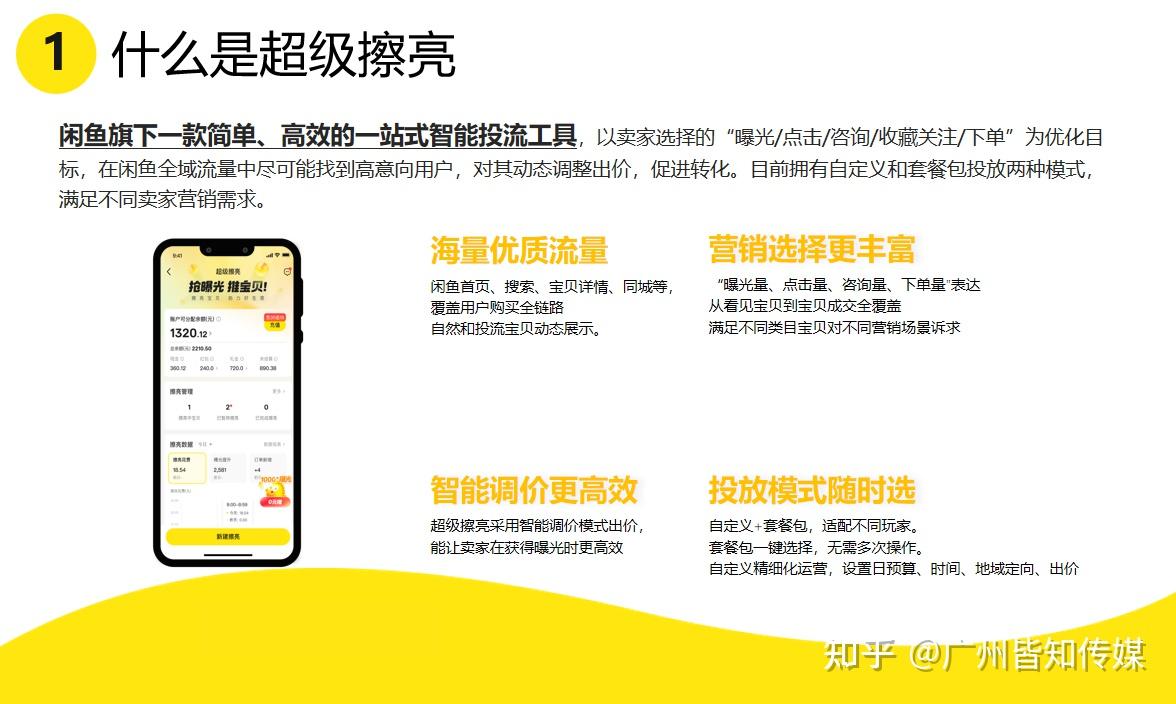 广州皆知信息作为闲鱼超级擦亮代理服务商,可以提供闲鱼超级擦亮服务,可为商家提供账号搭建发布帖子、投放指导、数据分析、售后支持等全链路服务。